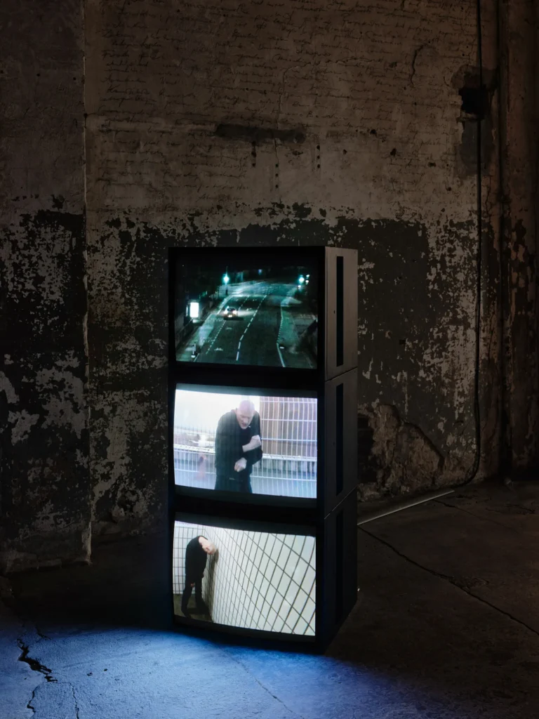 A body navigating the space, following the bizarre system of movement, unable to escape.